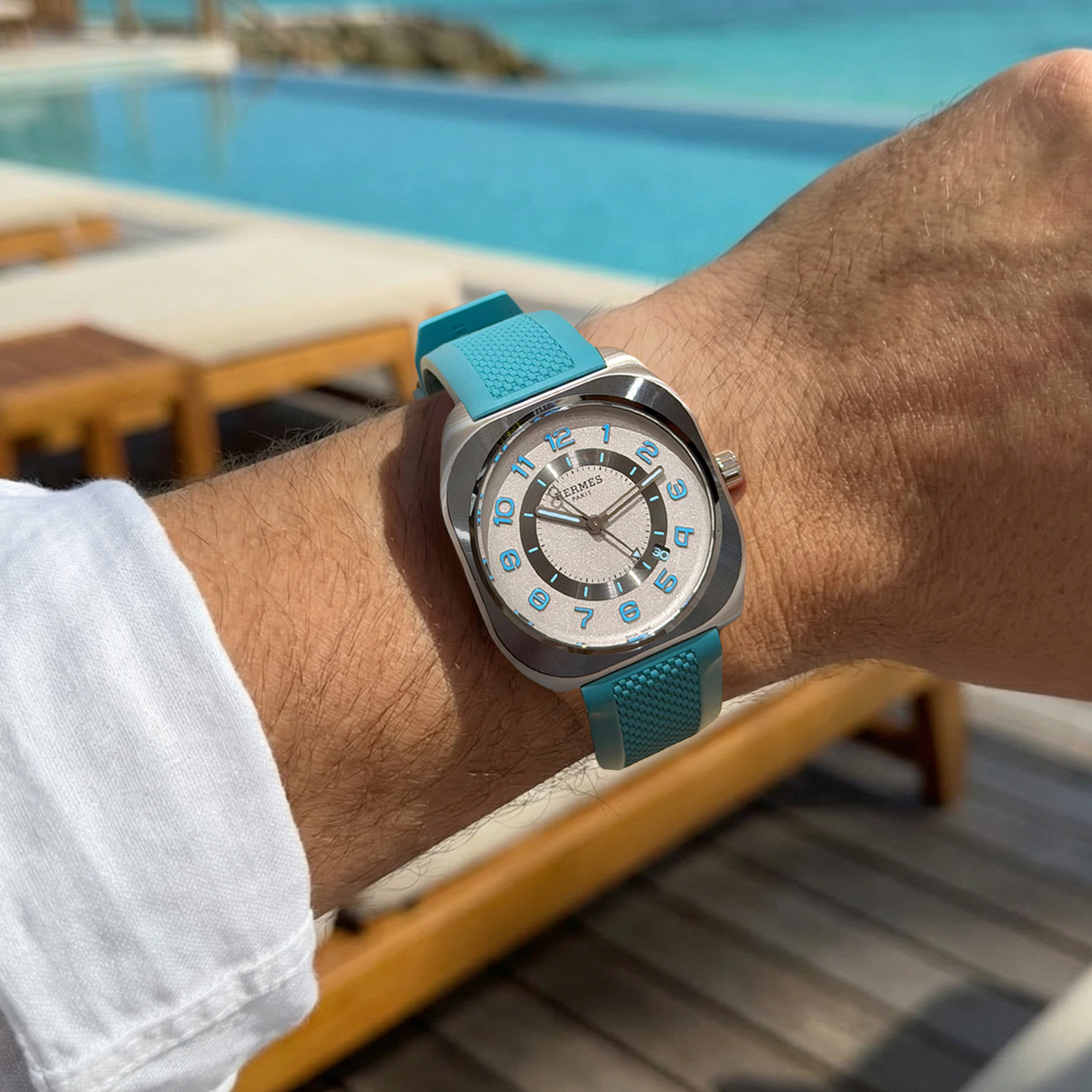 Hermès H08 Titanium with Bleu St Cyr Strap